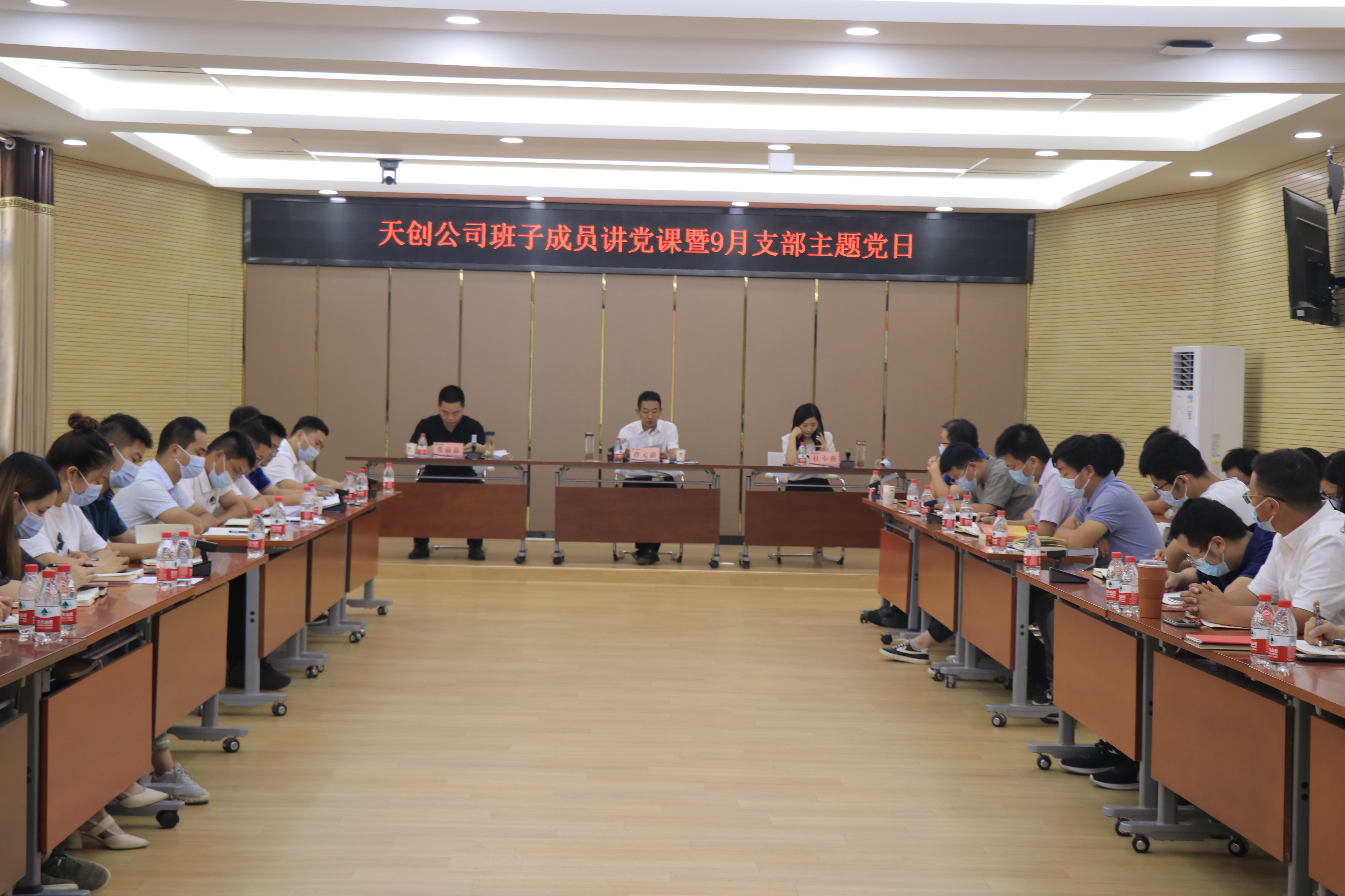 9月18日上午,天創市政支委會在公司三號會議室開展班子成員講黨課暨9月支部主題黨日活動,公司全體黨員參會學習。